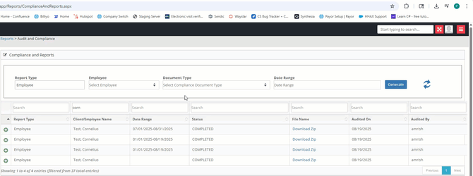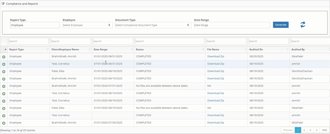 Each report is generated for a single client or employee and contains a series of documents that were selected when the report was firs mage.