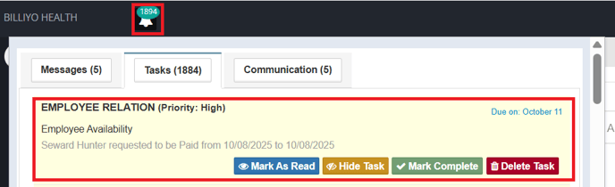 Once an Employee has Requested Time Off, You will receive a Task Notification,