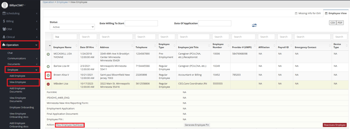 Navigation: Operation> Employee> View Employee