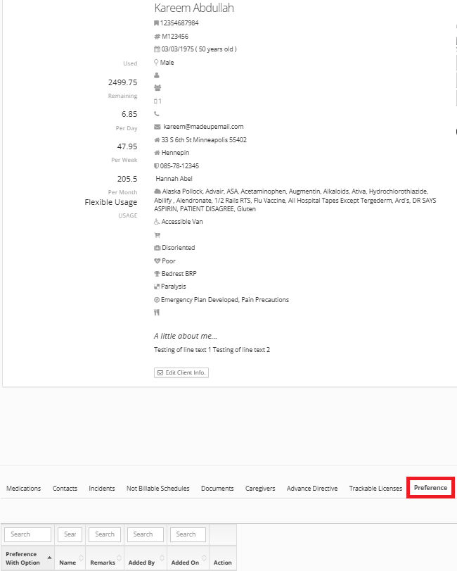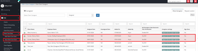 Additionally, Caregivers that have been Unmatched or Unassigned due to a Preference will be Highlighted within the Client Caregiver>View Client Caregiver Page.