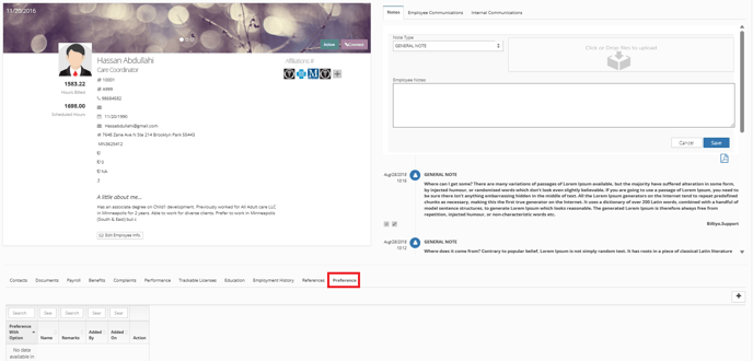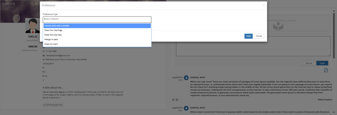 Here a Drop Down will appear of Preferences that you can add to your Employee's and Client's Profiles.