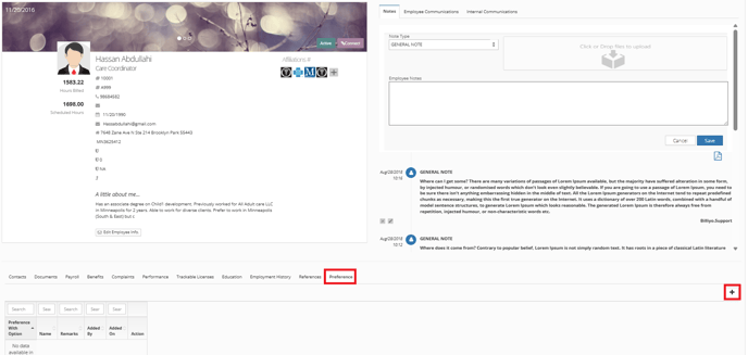 To add an Employee or Client Preference simply Click the Plus Sign.