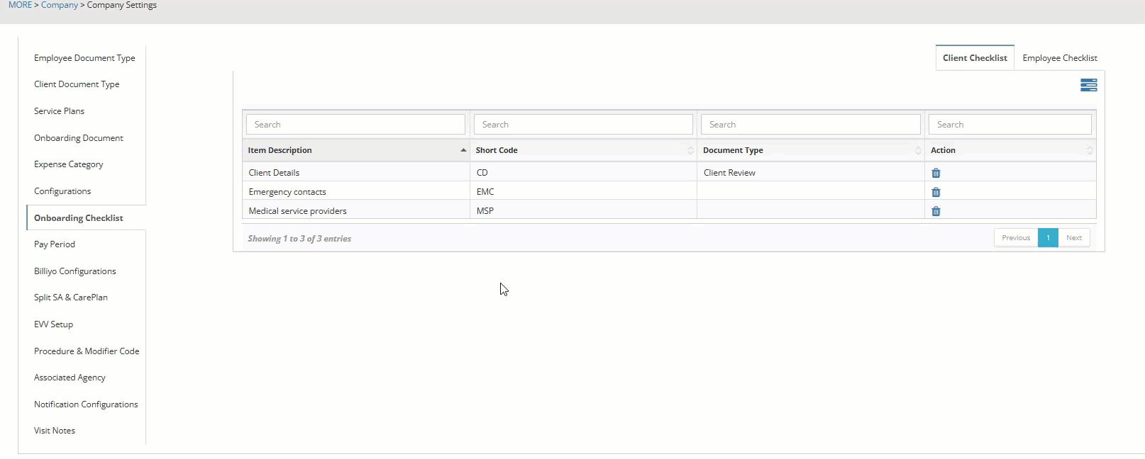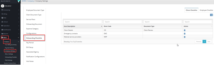 To configure the documents taht appear in thi checklist, we will use the company settings page.