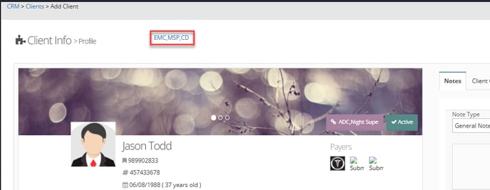 - Short Code - This is the abbreviation that appears at the top of the client's profile