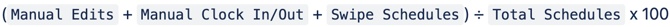 | EVV Exception | Percentage of EVV subject visits that were manually edited, manually clocked in/out for and the "swipe" schedule method was used for. EVV Exception calculation |