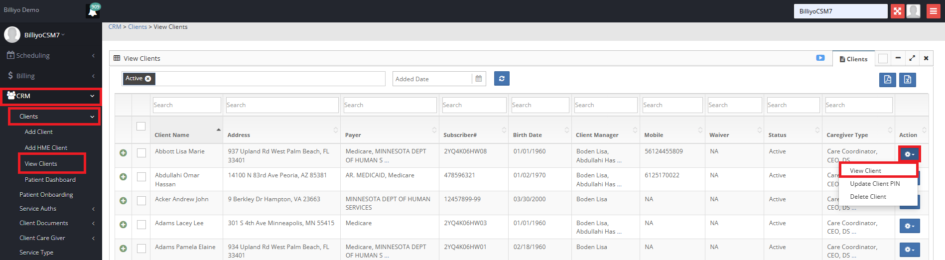 To delete a document from the client profile head on over to CRM>Clients>View Clients.