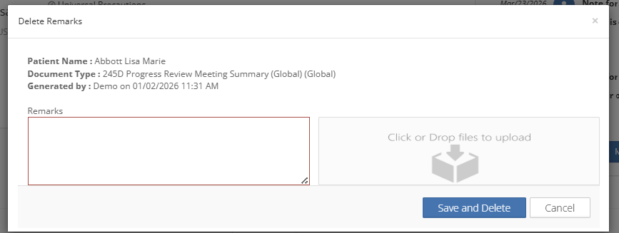 If you have generated or completed a client/patient document by mistake, it can be deleted.