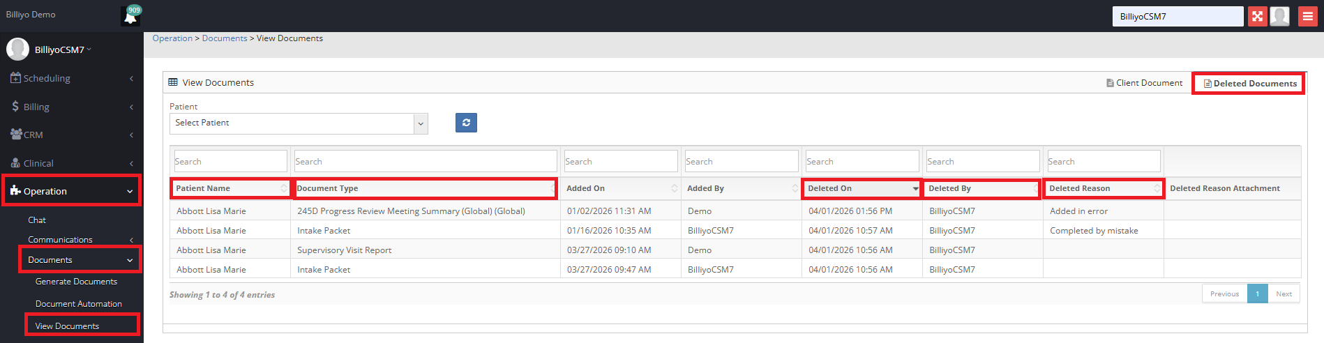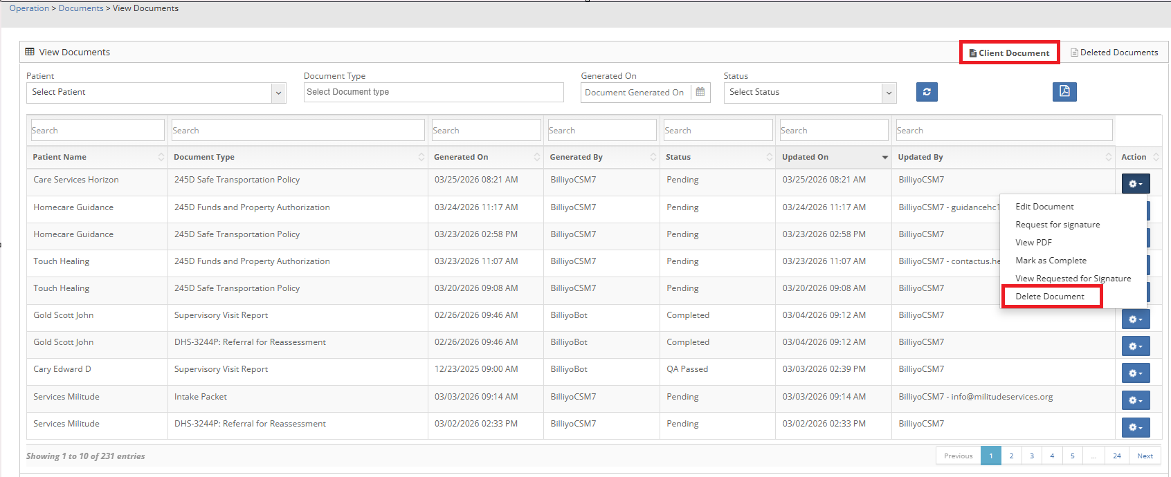 To View Deleted Client Documents, Head on over to Operation>Documents>View Documents.