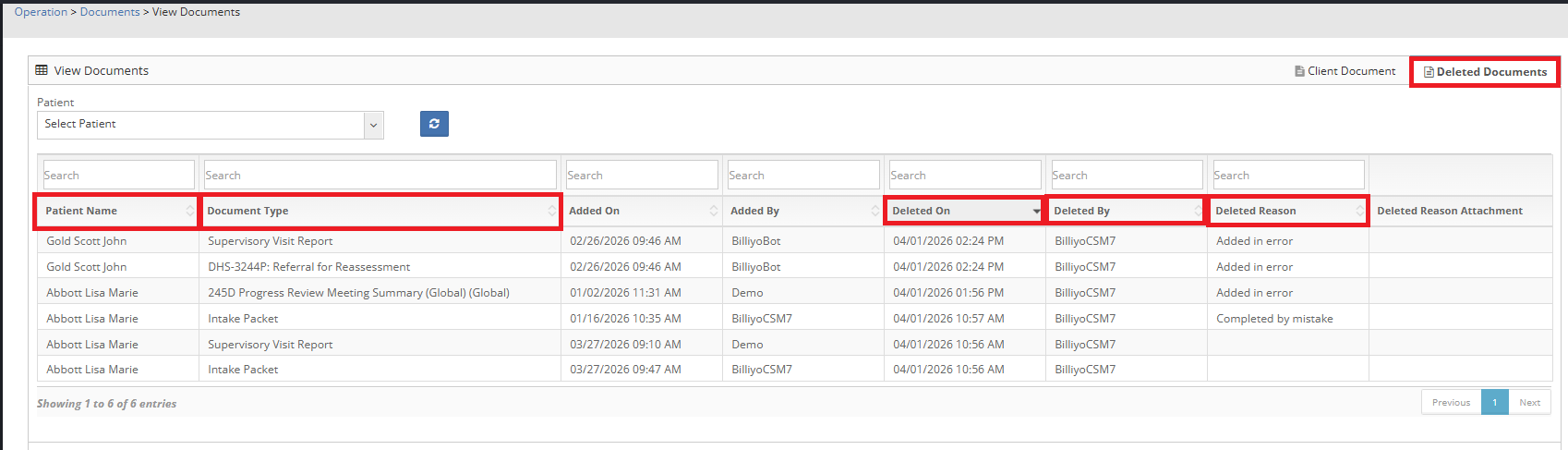 Once this action is taken, the document is moved to the Deleted Documents Tab.