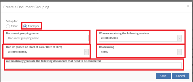 With Document Grouping you have the control of creating groups of documents or single documents to be auto generated based on intervals of care.