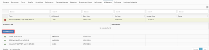 Once Completed the Affiliation will be available in the Tab and can be Edited.