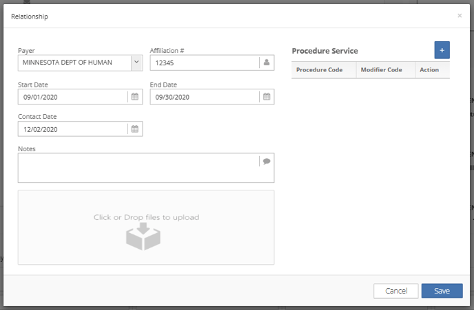 - To add a procedure code, first click the blue plus icon.