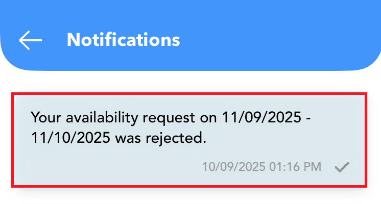 Once the request is Approved or Rejected you will get a Notification in the App.
