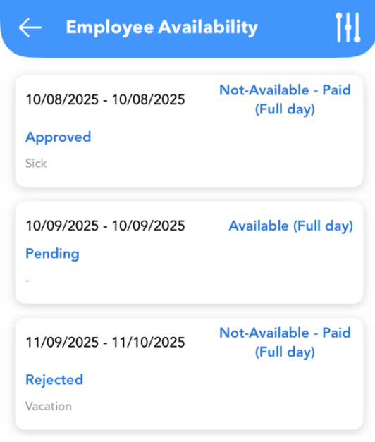 Time Off Requests and Employee Availability Requests can be a breeze using Billiyo.