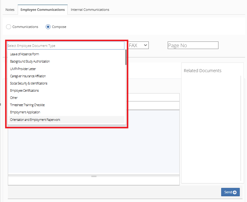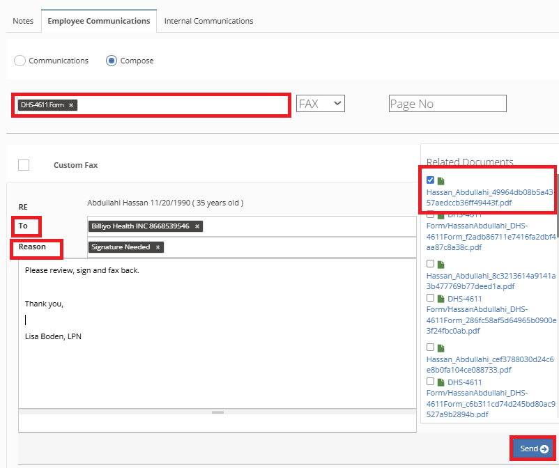 In Billiyo Employee Documents can be sent via fax or email to employees and other fax or email recipients.