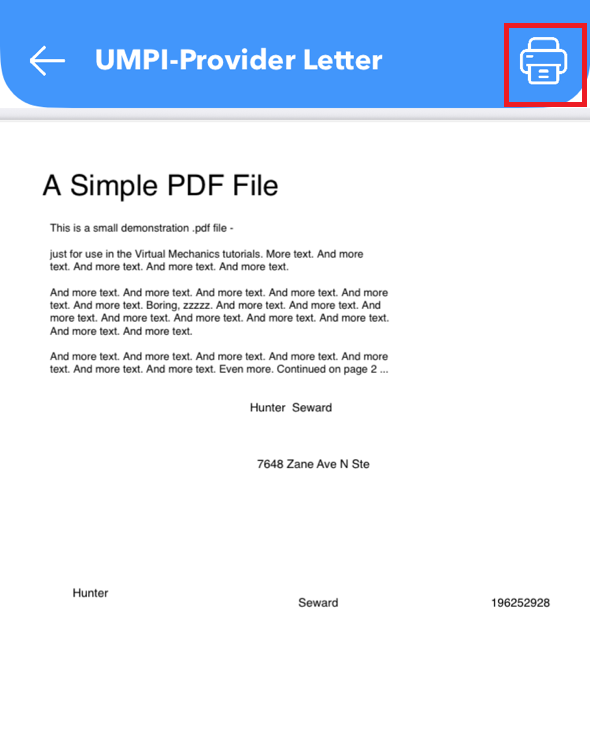 A PDF will appear and you can print the document, if you are connected to a WIFI printer.