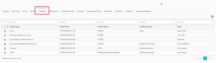 To Review and update an incident we will head back to the "Incidents" tab in the employee profile and then locate the incident we want to work with. After finding the correct report, we and expand it by hitting the green