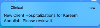 If a hospitalization is added by the back office a notification will be sent to the app user associated with that client.