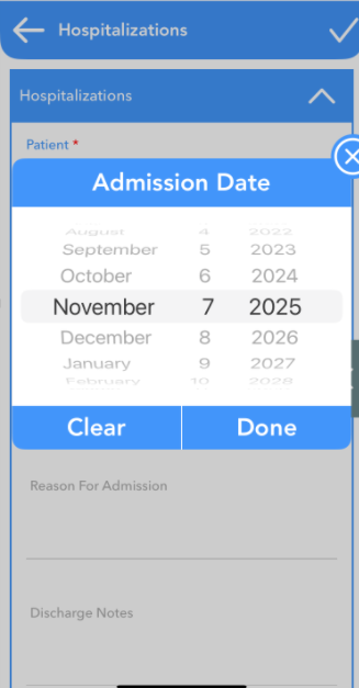 In Billiyo when a patient is hospitalized you will want to keep a record of this. The hospitalization can be added by back office staff and clinical app users.