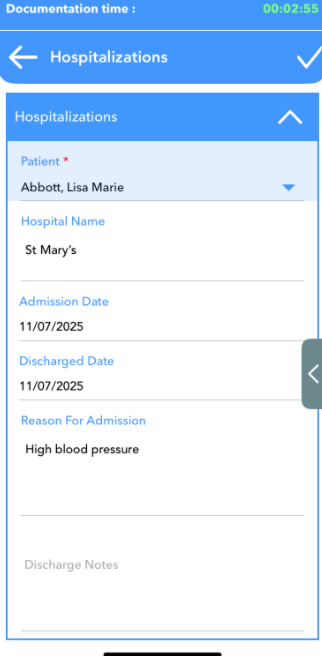 Discharge date and discharge notes are optional, as you may not have the details for these fields at the time of the submission. You can come back later to edit the form once you have those details.