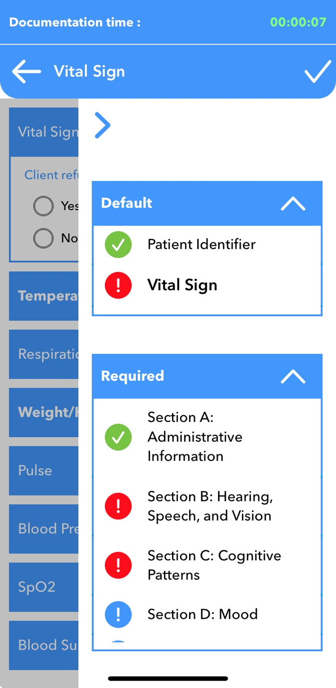 In order to Have an Assessment Save, you only have to Identify your Patient on the First Page of the Assessment, then your Assessment will Auto Save and the Assessment can be Left in progress as you leave the Assessment to take care of other responsibilities.