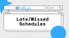 to edit the Consider Schedule Late After (in Minutes) and Consider Schedule Missed After (in Minutes) fields on the screen that appears.