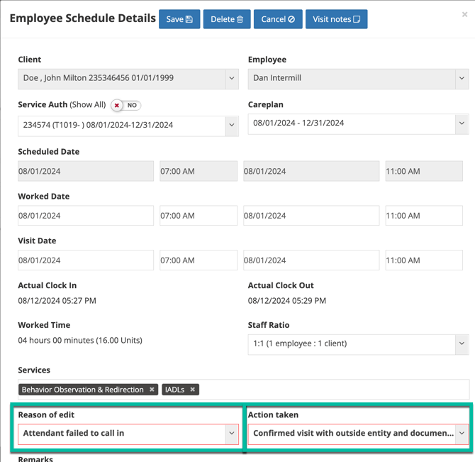 - Review visit start + end time and adjust.