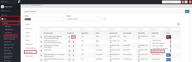 To delete a document, click on the