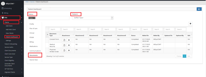 Once in the Dashboard you will Search your Patient by Status.