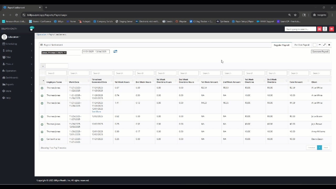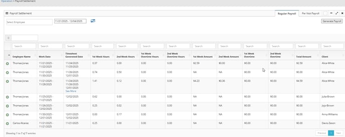 3. Then, to prepare a settlement for your chosen clients and dates, select the Generate Payroll button at the top left-hand side of screen.