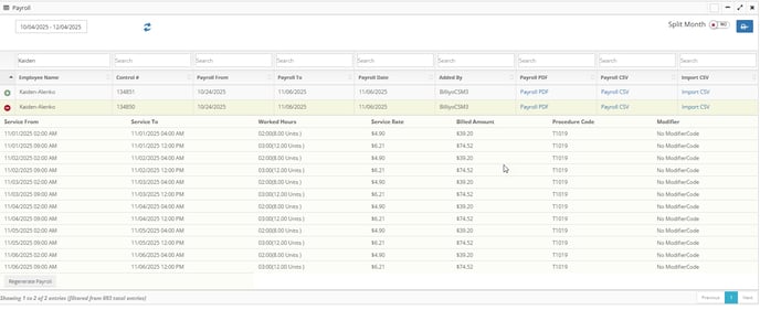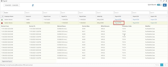 3. After finding a payroll settlement, you expand it with the green plus icon ![]()