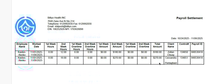 This will show you a list of the hours and rates that are included in the payroll settlement you prepared.
