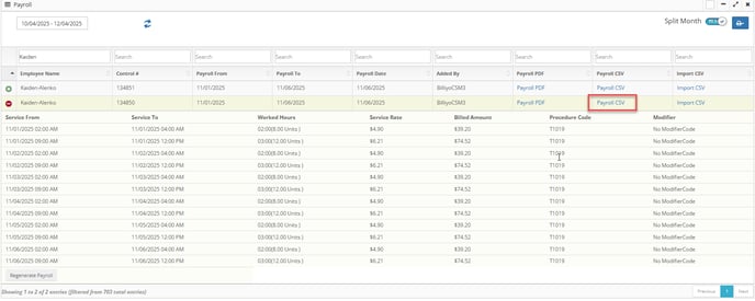 Click in the blue text that reads: Payroll CSV.