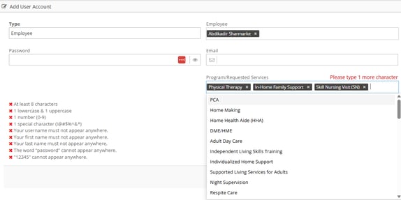 We also have an office employee names Otto Octavius. Otto was hired to oversee PCA clients and he will not work with homemaking. So, in his user account, we assigned the PCA program.