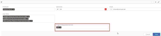 Employees are assigned to programs in the Program/Required Services in their user account.