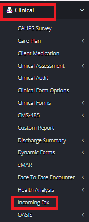 To view and reconcile eFax head over to Clinical>Incoming fax.