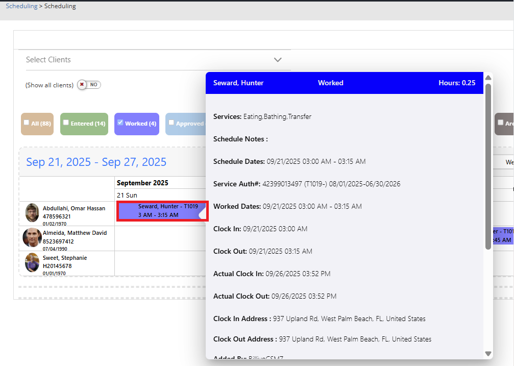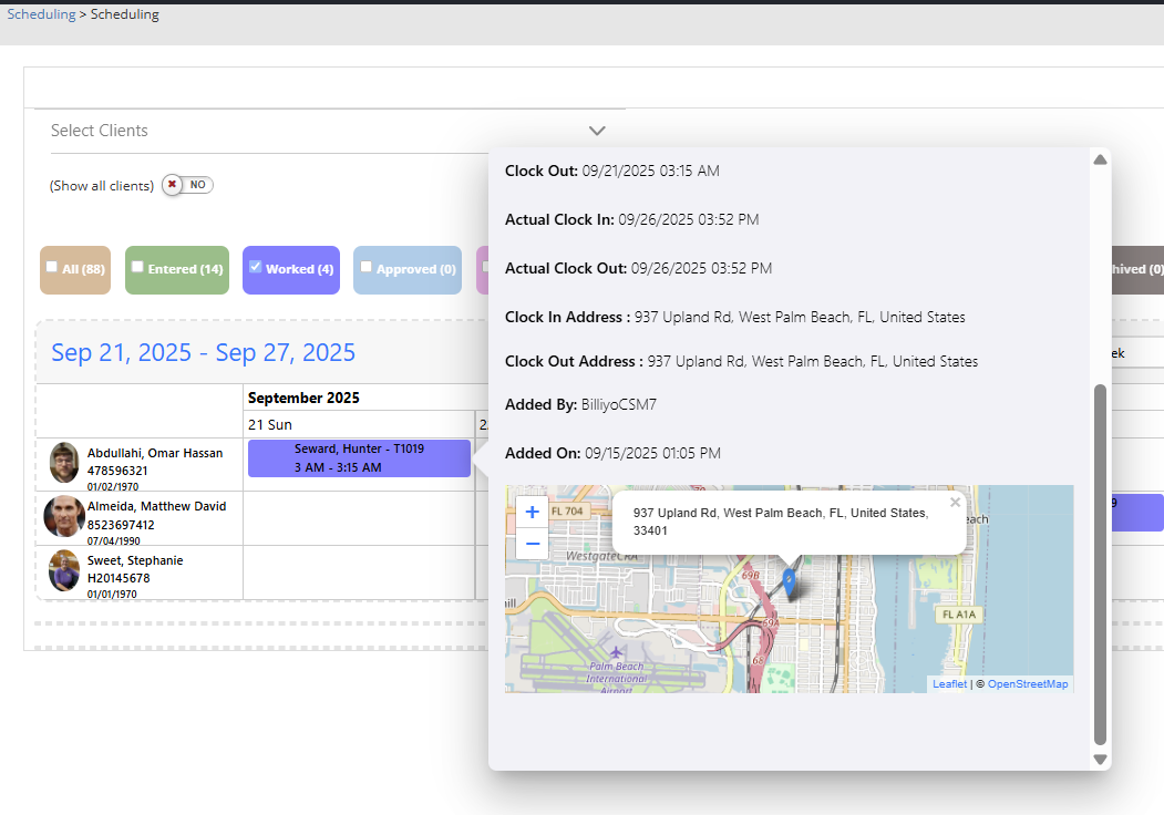 One a schedule is in the worked status you can review the worked hours, location and more.