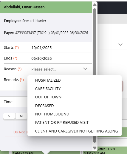 If a client is hospitalized, out of town or refuses a visit, you can mark it non billable.