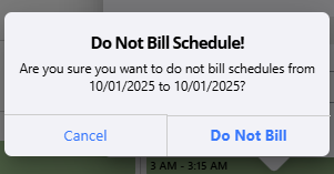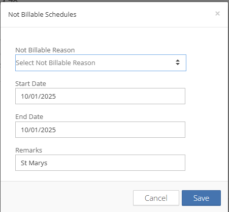 Click on the entered schedule that you would like to cancel/mark non billable and then choose .