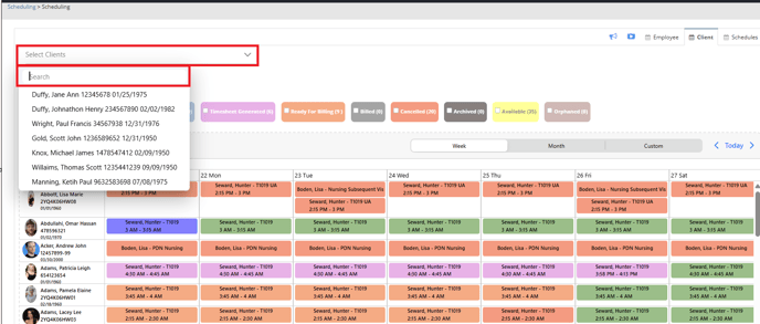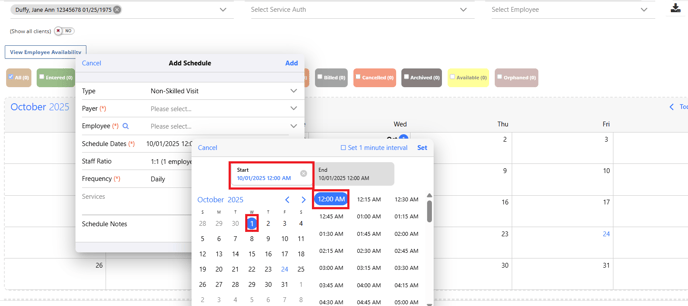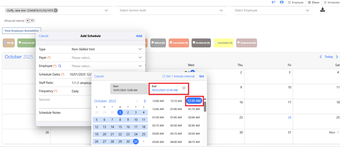Once you have selected your client, click on the first day of the calendar for which you would like to build your schedule.