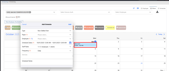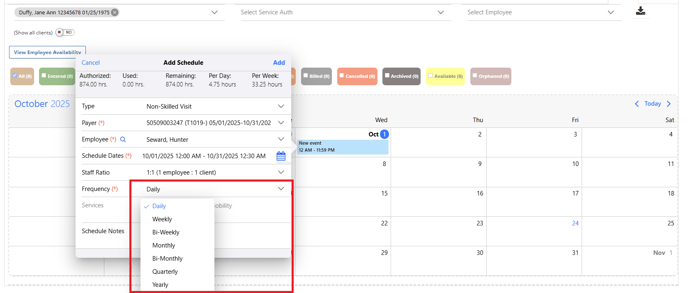 Once you have a caregiver connection, a service authorization and a care plan you are ready to create schedules.