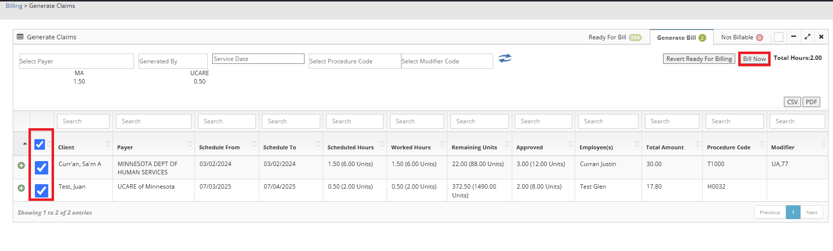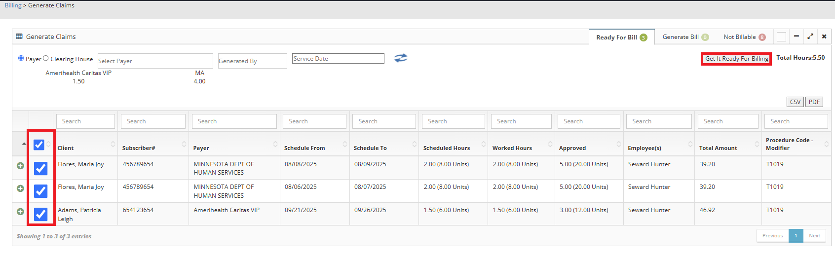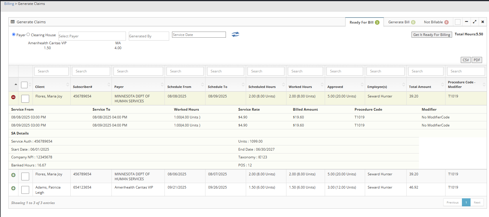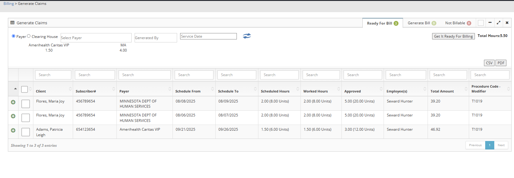 Once a timesheet is generated you will take the next step in the billing process. In Billiyo we call this generating a claim.