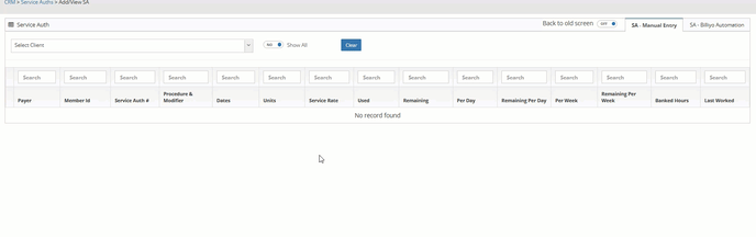 To find the agreement that we will be updating, please head to the "Add/View SA" page. To find this page, please head to the left menu and navigate through: CRM > Service Auths > Add/View SA