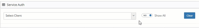 By default, you will only be able to look up active clients. To see all client (inactive, onboarding and discharged) please select the "Show All" radial and toggle it to "On."