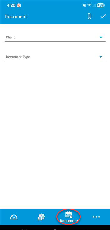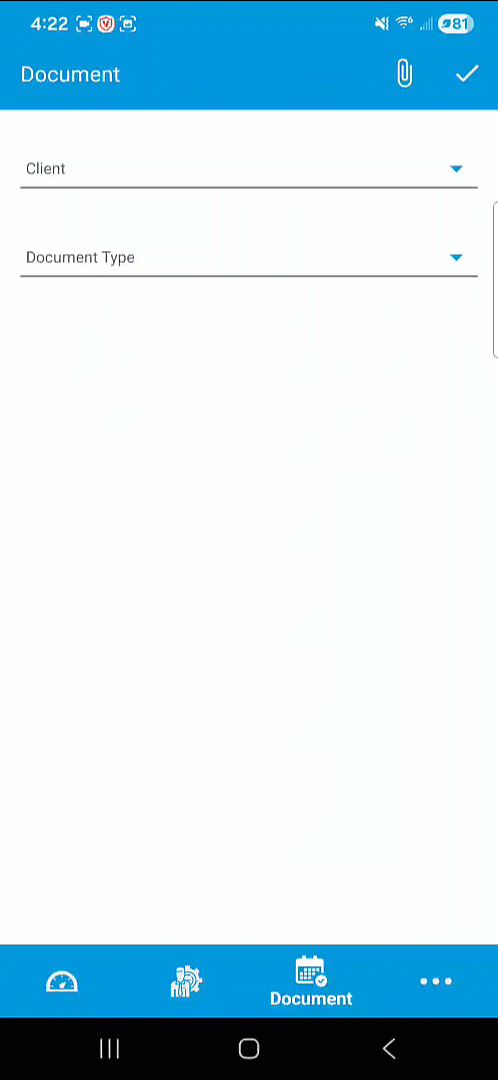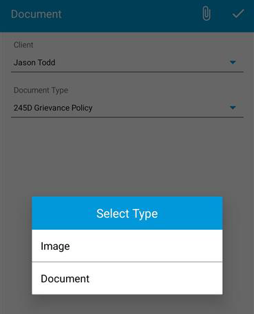 If you have the form you want to add for the client downloaded onto you device, then chose the "document" option. This will open up the files on your phone. From here you can choose the document would like to attach for the client.