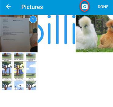 You can use the camera icon in the top right of the page to take a photo of the document you would like to attach.